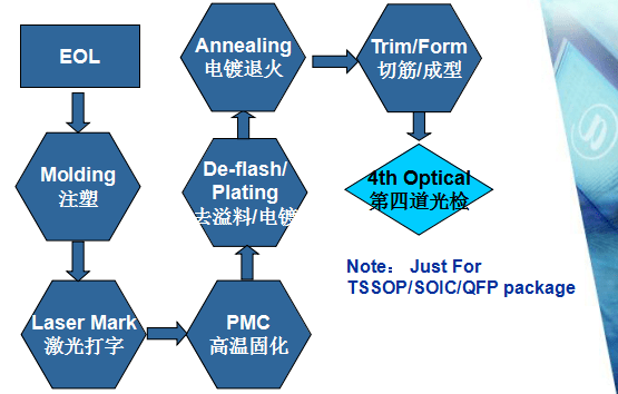 目的:De-flash的目的在于去除Molding后在管體周圍Lead之間 多余的溢料; 方法:弱酸浸泡,高壓水沖洗;