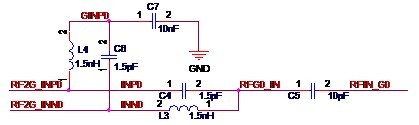 其實(shí)大家也一定想到了,收發(fā)器接收信號(hào)和收發(fā)器發(fā)送信號(hào)差不多就是互為逆過程,因此電路的結(jié)構(gòu)也差不多是相反的。沒錯(cuò),看了下面的實(shí)際電路圖就知道了。 先來介紹使用平衡器的方案。在某實(shí)際案例中,采用了如圖2-8所示的平衡器電路。單端信號(hào)RF_IN經(jīng)過平衡器F5后得到差分的射頻信號(hào)RFIN_P和RFIN_N。