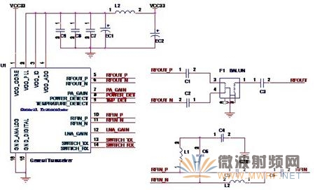 圖2-11 完整設(shè)計(jì)的無線收發(fā)器外圍電路
